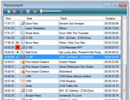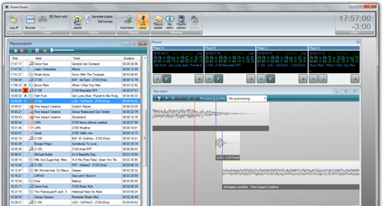 The Power Studio playlist is your guide during the show. Not only does it contain the music tracks you are going to play, but also jingles, fillers and external content like news bulletins , which are automatically updated, without you even having to pay attention to it. Navigating and editing the playlist is easy and can be done with the mouse, keyboard or a Contour Shuttle device.