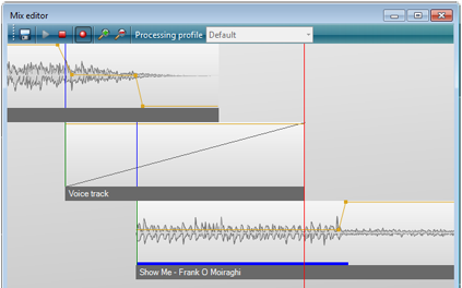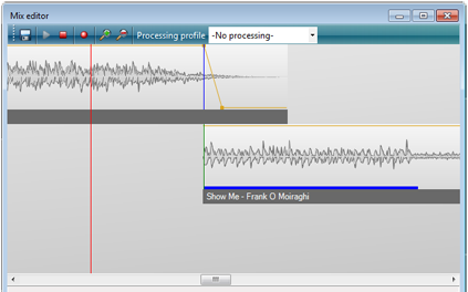 Power Studio contains a powerful graphical Mix editor that can be used to manually tune the segues in the playlist to perfection. Editing mixes is as easy as dragging the track or volume handles.